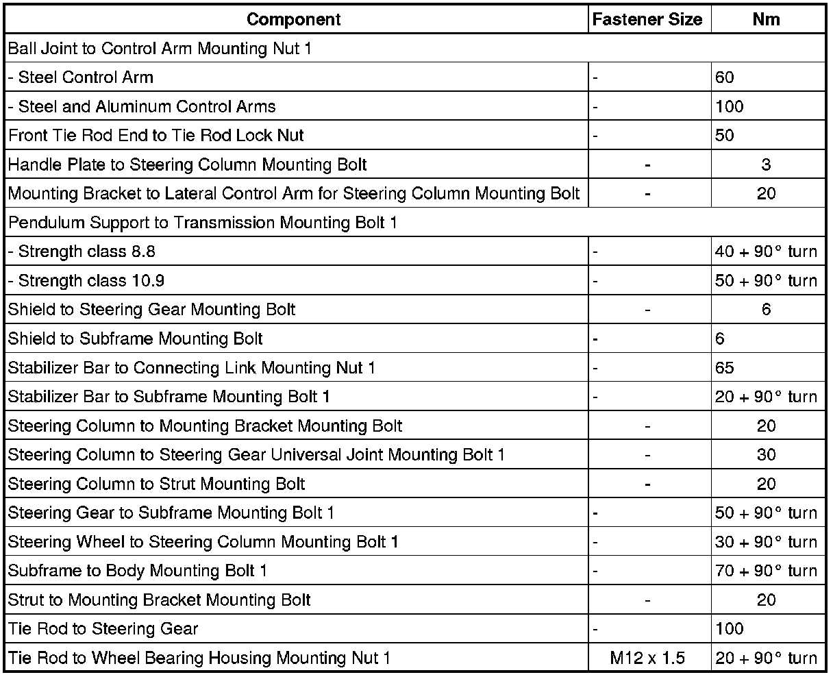 Steering: Specifications