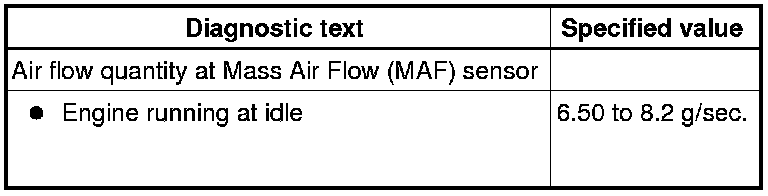 - Using the scan tool, Check the air flow quantity of the Mass Air Flow (MAF) Sensor (G70) at idle: