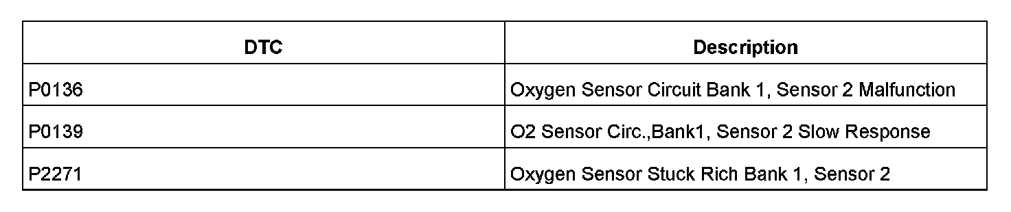 MIL ON or Flashing, Diagnostic Trouble Codes (DTCS) P0136, P0139 or P2271 Stored in ECM Fault Memory