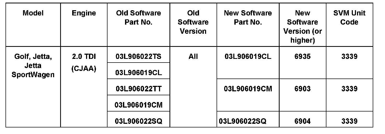 ^ Update the Engine Control Module using the SVM Unit code as listed in the table.