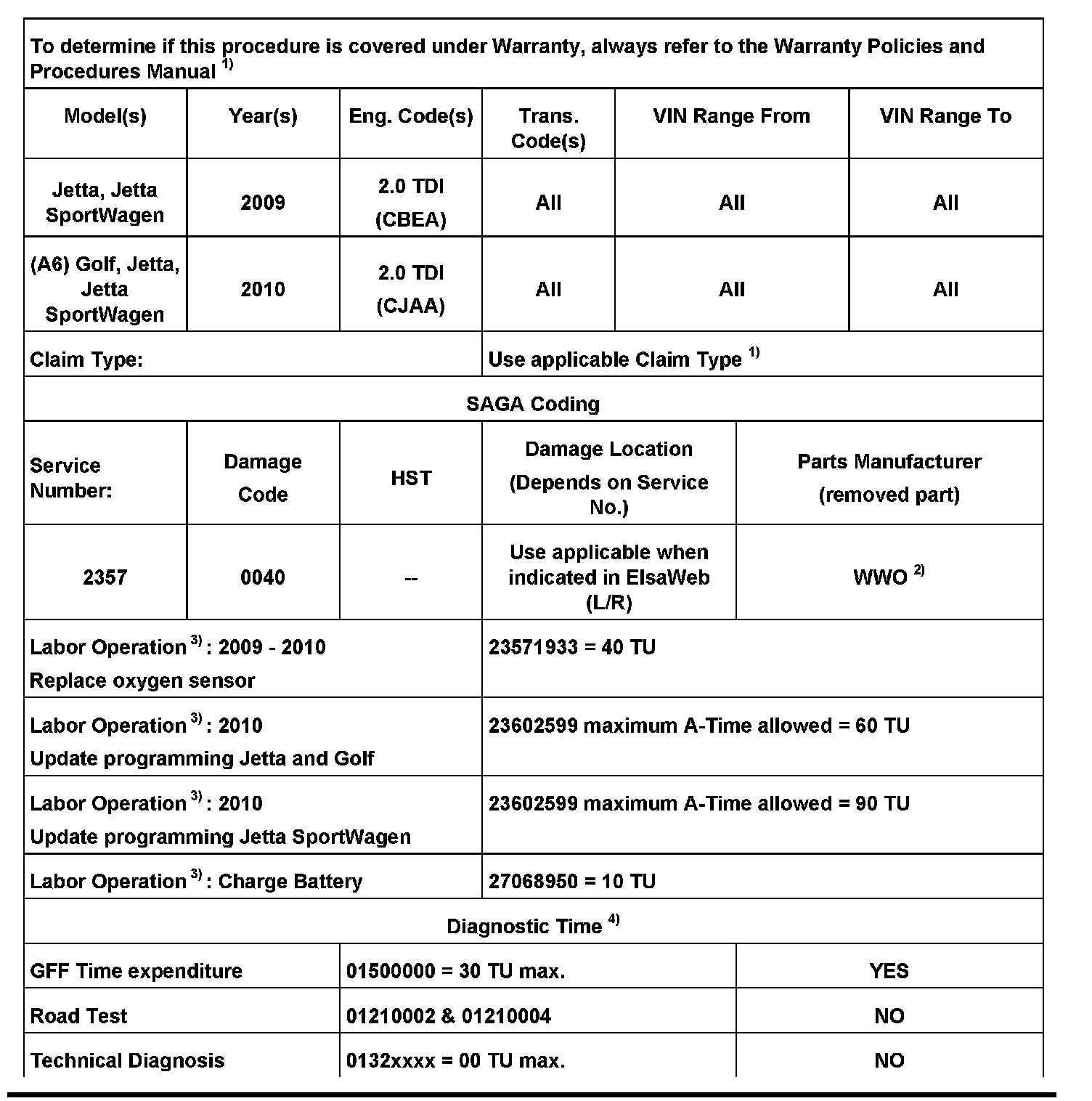 2010 Model Year Only: Replace Oxygen sensor -G130- Bank 1, Sensor 2 to repair vehicle with listed faults, and update program ECM using Software Version Management (SVM).
