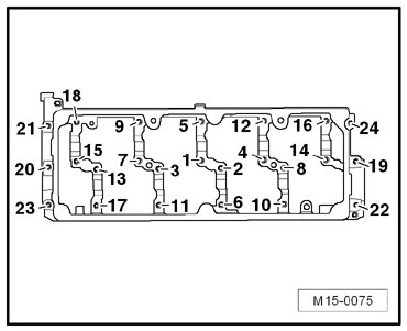 - Tighten cylinder head bolts in the sequence indicated, in four stages as follows: