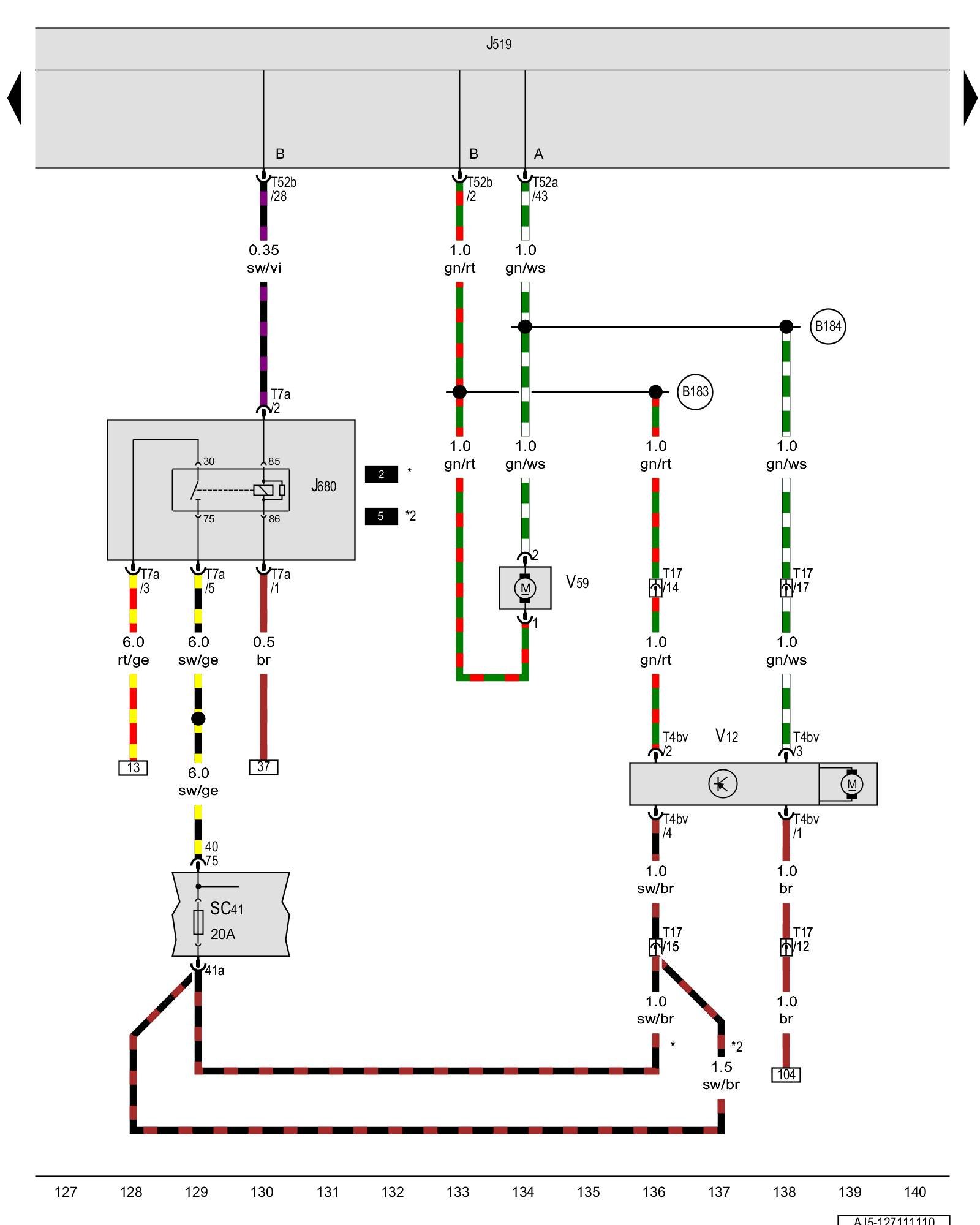 Vehicle electrical system control module, Terminal 75 power supply relay 1, Rear window wiper motor, Windshield and rear window washer pump