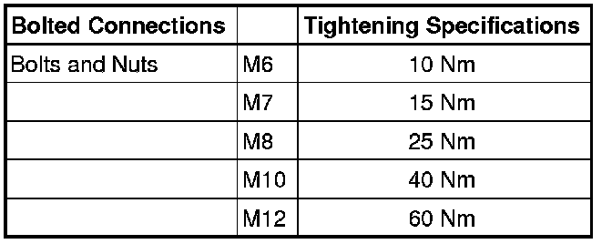 Tightening Specifications