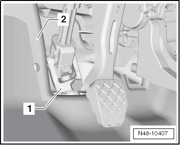There must be at least 5 mm of free space all around between universal joint - 1 - and cutout of bulkhead - 2 -.