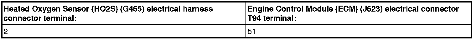 - Using a multimeter, check the Oxygen Sensor (O2S) Behind Three Way Catalytic Converter (TWC) (G130) electrical harness connector terminal 1 to engine ground.