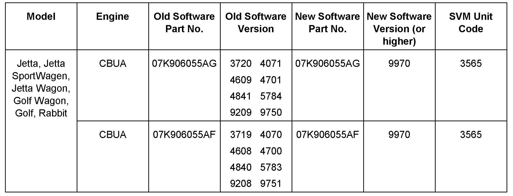 ^ Update the Engine Control Module using the SVM Unit code as listed in the table.