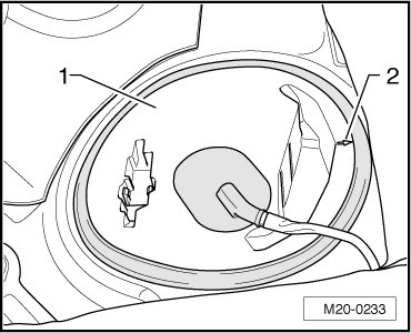 - Remove the cover - 1 - from fuel delivery unit. The arrow - 2 - points in the direction of travel.