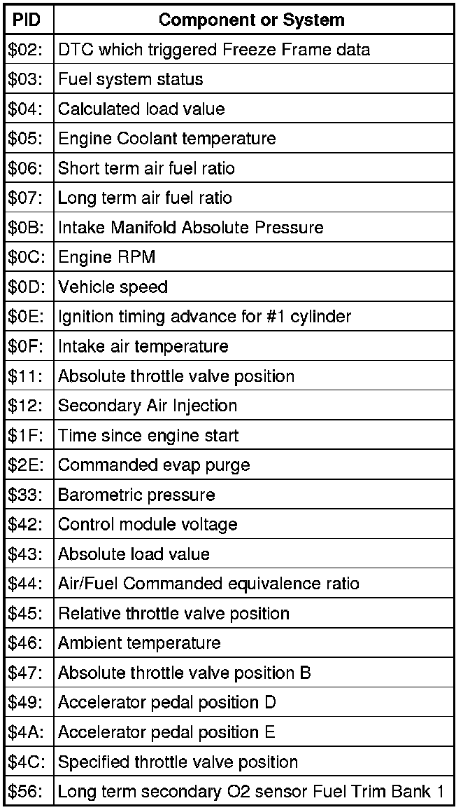 Depending on scan tool and protocol used, the information in diagnostic mode 02 may be referred to by different names such as Test-ID (TID), Hex-ID, Component-ID (CID), or On-Board Diagnostic Monitor Identifier (OBDMID).