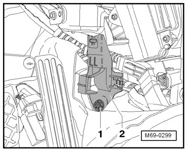 - Unlock the connector - 1 - in - direction of arrow - and remove the wiring harness form the control module - 2 -.