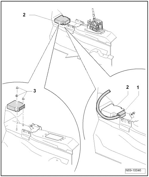When working on the airbag control module (J234) always not the safety guidelines when working on airbags, belt tensioners and battery cut-out units. Refer to => [ Airbag, Belt Tensioner and Battery Cut-Out Units, General Safety Precautions ] Airbag, Belt Tensioner and Battery Cut-Out Units, General Safety Precautions.