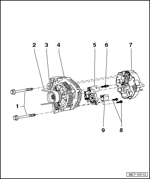 • Removing and installing, refer to => [ Ribbed Belt Pulley on Generator ] Service and Repair.