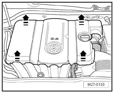 - Remove the engine cover upward - arrows - and then to the front.