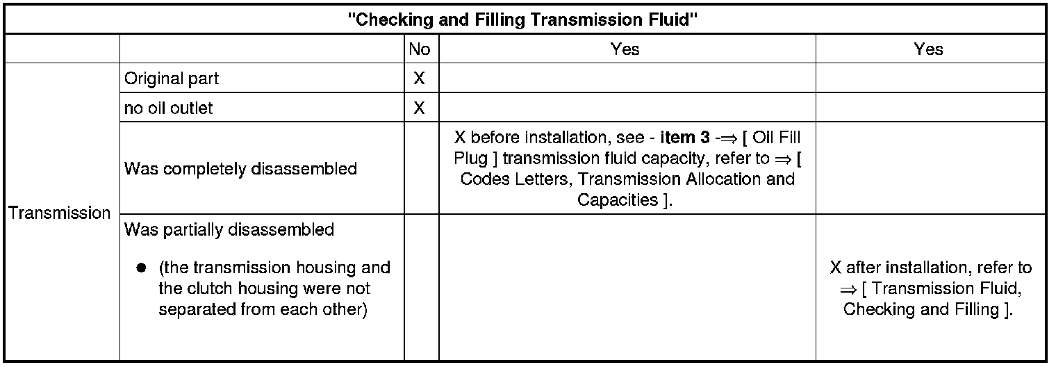 Pay attention to the following list for the subject -"Transmission Fluid, Checking and Filling"
