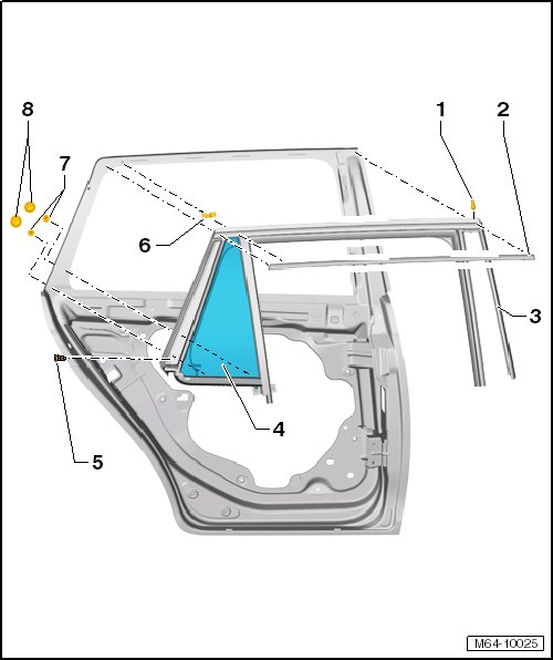 • Removing and Installing, refer to => [ Window Guide Trim Molding ] Window Guide Trim Molding