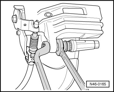 - Place engine/transmission jack (V.A.G 1383 A ) with a cloth under brake line.
