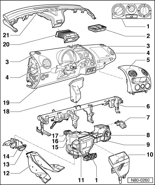 • Removing and installing => [ Heating and Ventilation Controls ] Heating and Ventilation Controls