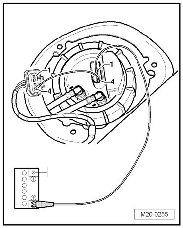 - Connect terminals - 4 - of the connector and fuel pump using an adapter cable from (VAG 1594C).
