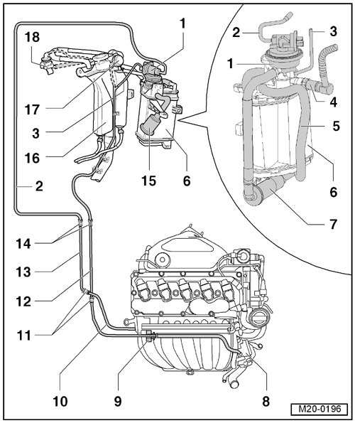 • Engine code BPR: From the fuel tank, see - item 10 - in => [ to EVAP Canister ] Removal and Replacement.