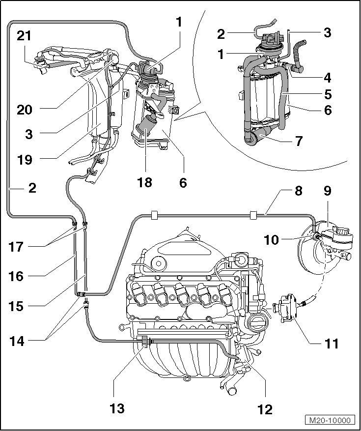 • Engine code BPR: from fuel tank see - item 10 - in => [ to EVAP Canister ] Removal and Replacement.