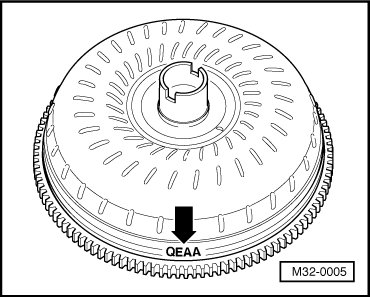 Different types of torque converters exist. Identification is performed via code letters - arrow -.