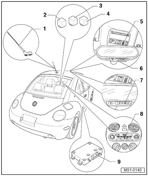 • Removing and installing, refer to => [ Radio/GPS/Telematics Antenna ] Radio/GPS/Telematics Antenna.