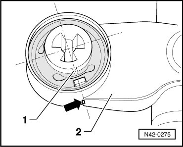 - Press right spring mount using engine/transmission jack (V.A.G 1383 A) upward far enough so that bonded rubber bushing can be pulled out.
