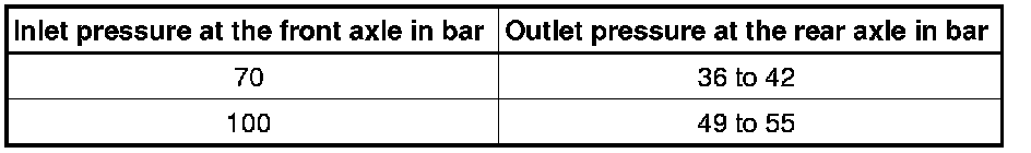 Load-Dependent Brake Pressure Regulator, Adjustment Values