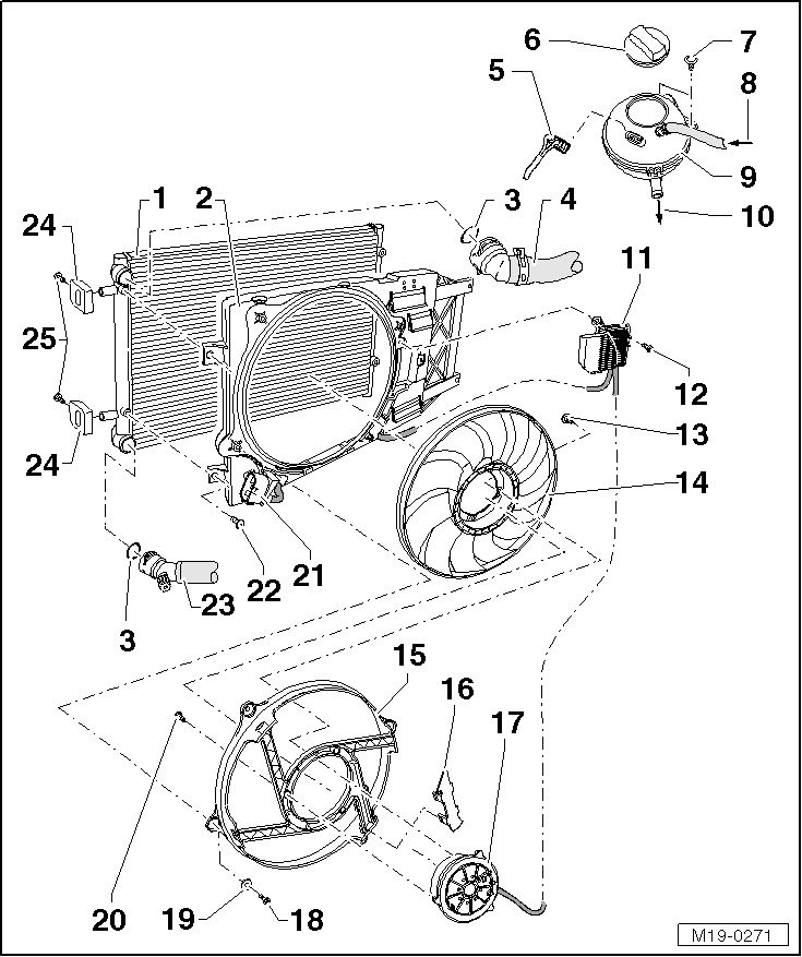 Forms a unit with coolant fan motor - item 17 -.