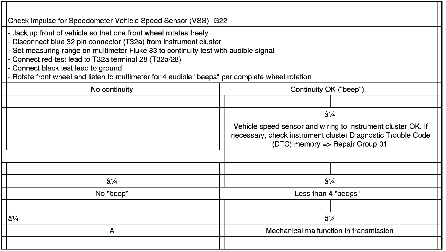 Checking speedometer vehicle speed sensor (VSS) -G22-