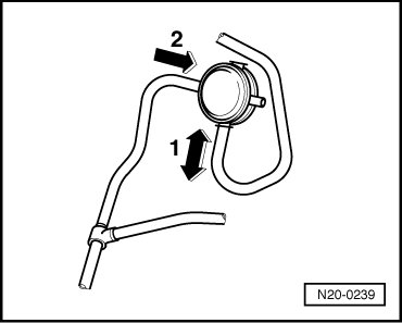 It is only open in one flow direction - arrow 2 - from the T-piece of the EVAP canister/solenoid valve 1.