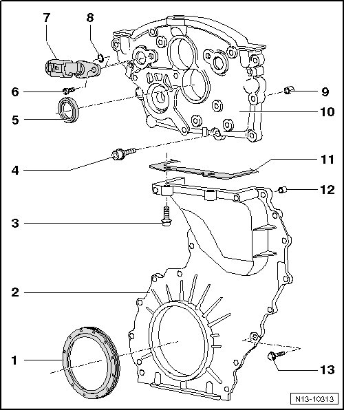 • Removing and installing, refer to => [ Sealing Flange, Transmission Side ] Service and Repair.
