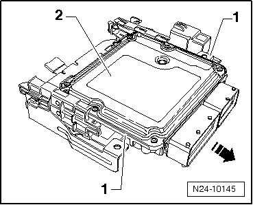 - Press the release catches - 1 - outward and slide the ECM - 2 - from the mounting frame.