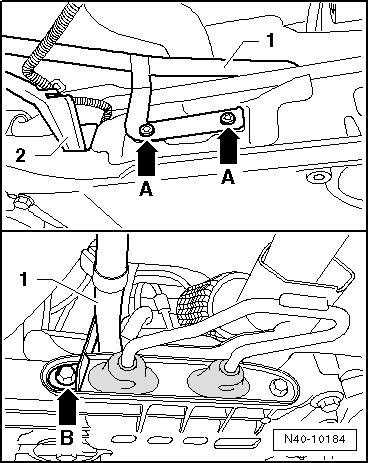 - Place a block of wood - 1 -, for example, between (V.A.G 1383 A) and the subframe.