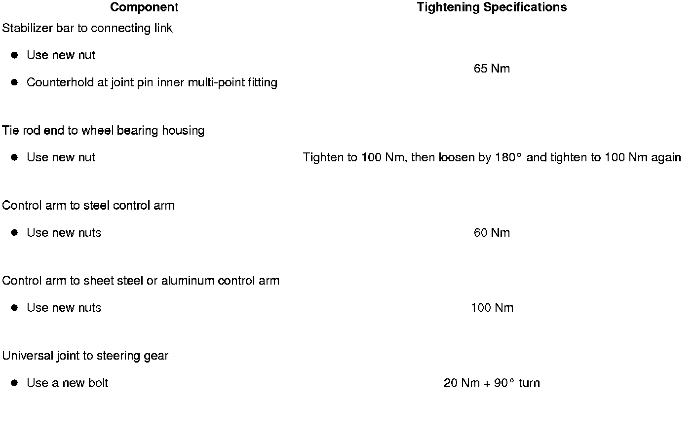 Tightening Specifications, Subframe to Body
