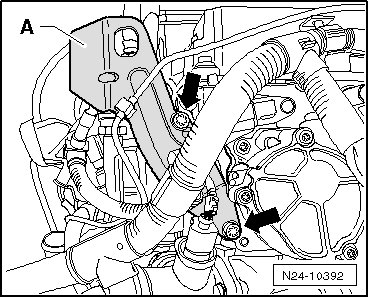 - Remove the bolt - arrow - for intake manifold support on the right.