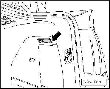 - Push contact plate - 1 - of Luggage Compartment Light in - direction of arrow - and remove light lamp - 2 - out of socket.