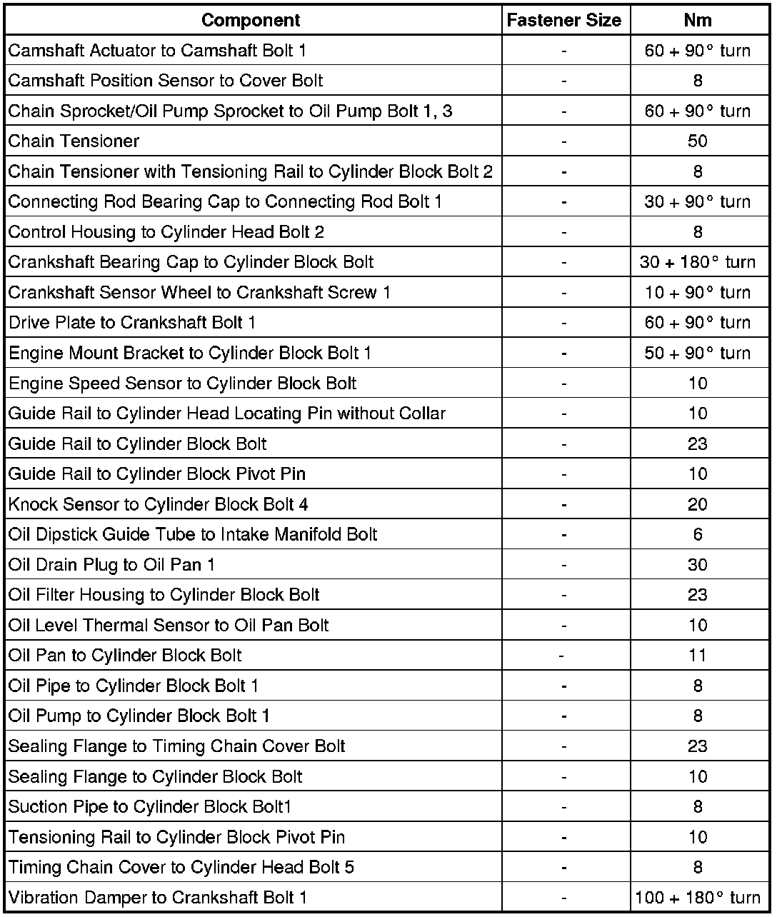 Crankshaft, Cylinder Block - Fastener Tightening Specifications