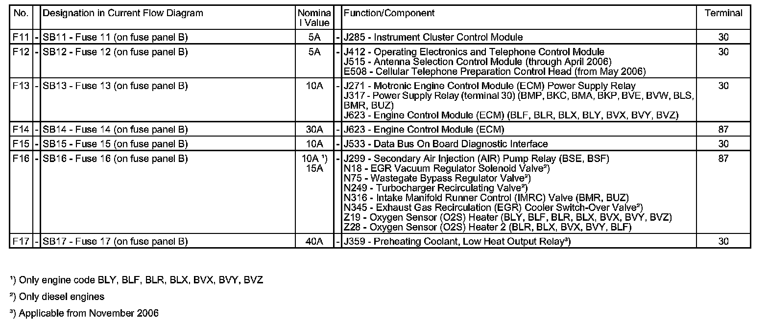 Fuse Arrangements On Electronics Box High, Engine Compartment, Left (Low Box) Part 3: