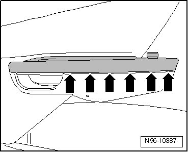 - Carefully pry off grip panel at retaining lugs - arrows - using (3409).