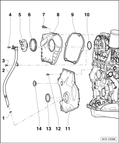 • Passat, Removing and Installing => [ Lower Timing Chain Cover, Removing and Installing, Passat and Passat CC ] Lower Timing Chain Cover, Removing and Installing, Passat and Passat CC