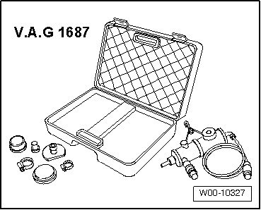 • Before removing adapter, discharge pressure in testing circuit by pulling off coupling from adapter (V.A.G 1687/5).