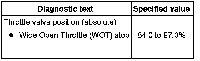 - Using the scan tool, check the throttle valve position (absolute) at Wide Open Throttle (WOT) stop: