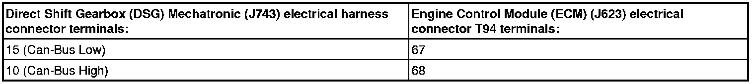 CAN-Bus Terminal Resistance, Direct Shift Gearbox Mechatronic (TCM) to Engine Control Module (ECM) Checking