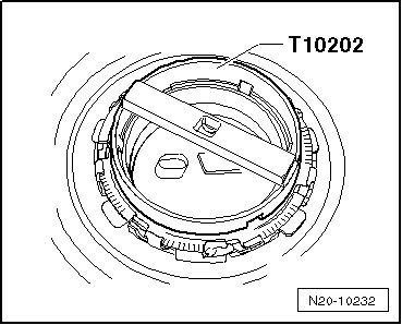 - Install and tighten the locking ring using (T10202). Tightening specification: 110 Nm.
