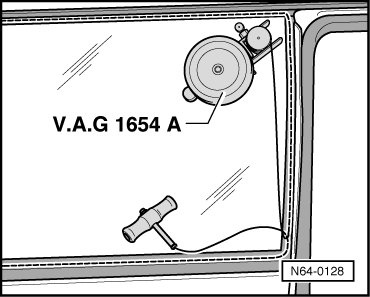 - As shown in illustration, one suction cup can be removed from (V.A.G 1654). By doing this, the roller of the (V.A.G 1654 A) can be placed closer to window flange.