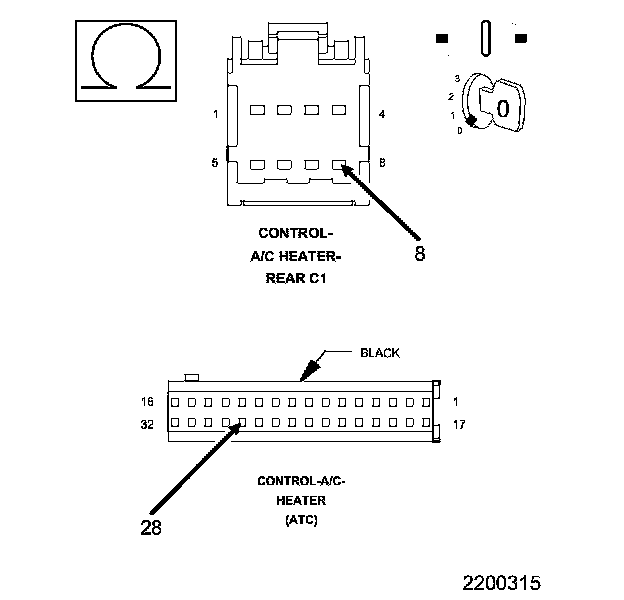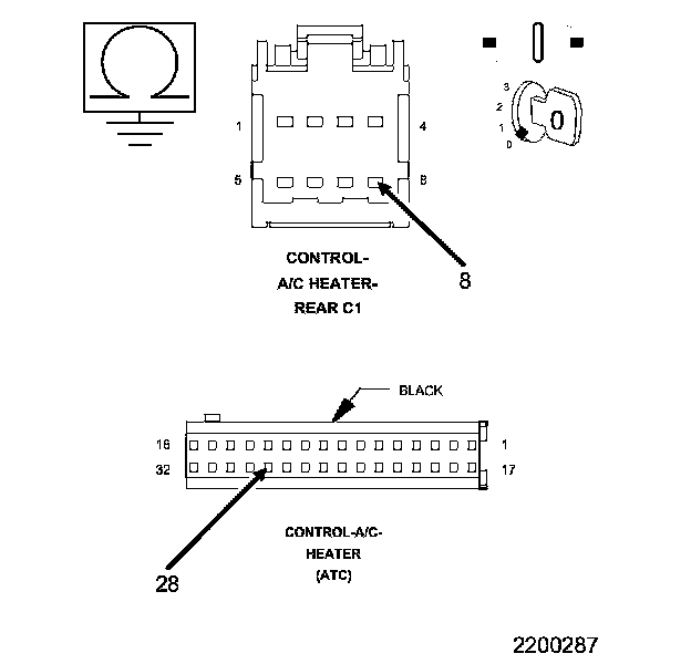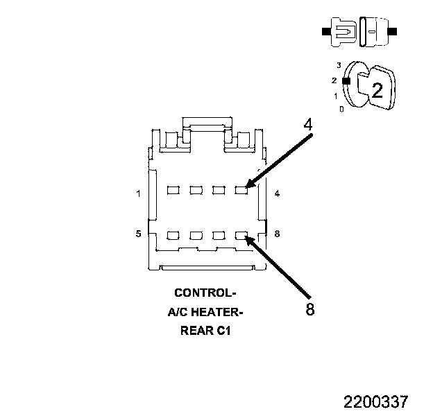 • Check the Rear A/C Heater Control and harness connector for pushed out, damaged, corroded pins or terminals.
