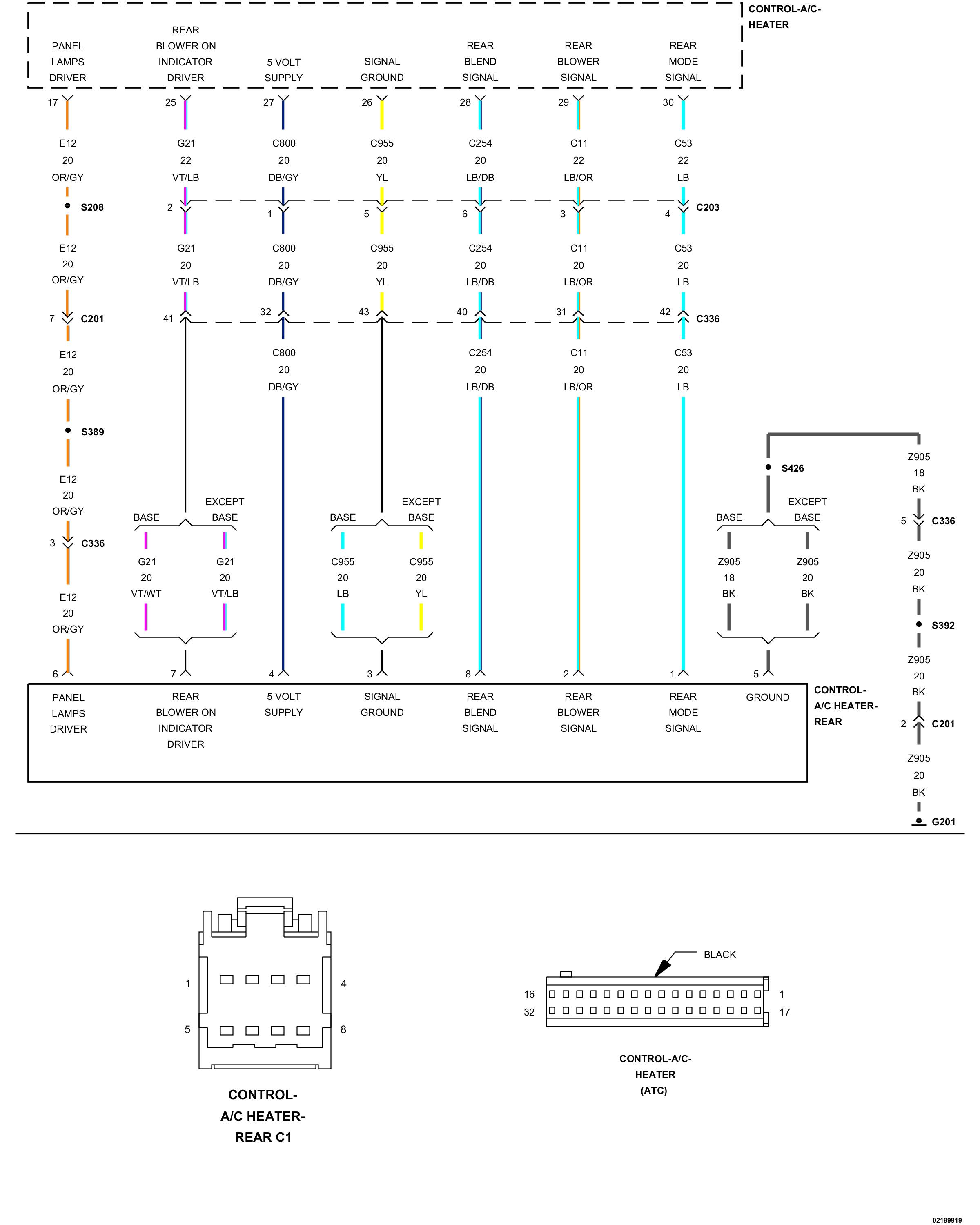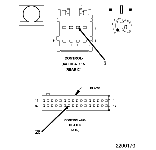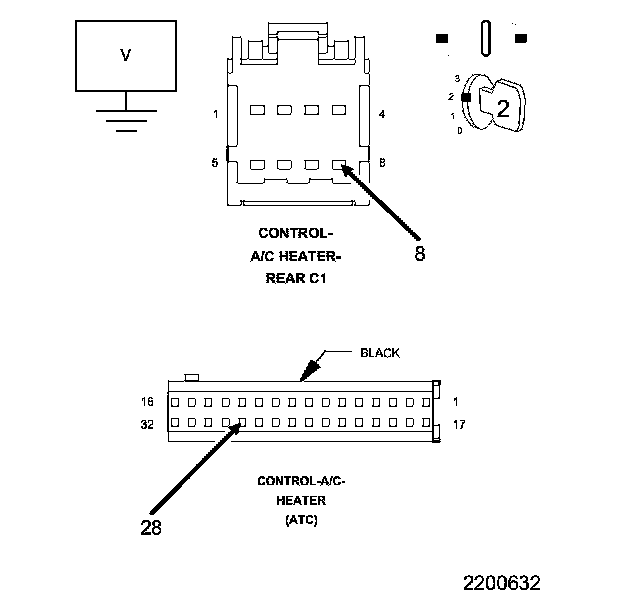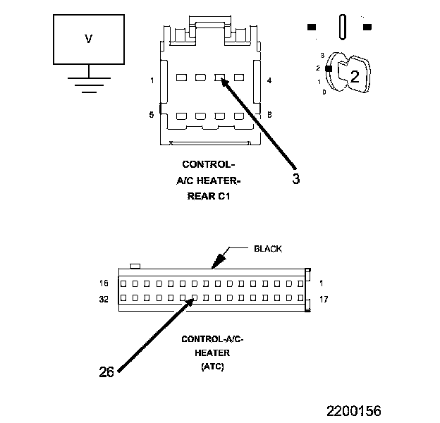 The Rear A/C Heater Control works in conjunction with the A/C Heater Control to control the rear blower motor, rear temperature control and rear mode control. The Rear A/C Heater Control is constantly monitored by the A/C Heater Control for proper operation. If the monitored signal circuits are out of a calibrated range at DTC will set.