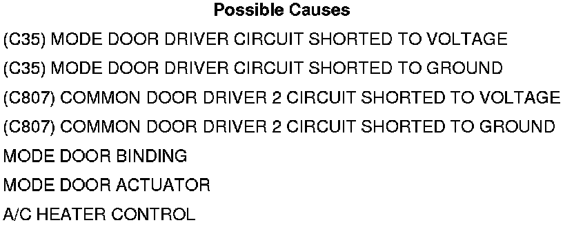 Repair the (C35) Mode Door Driver circuit for a short to voltage.