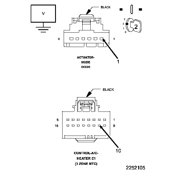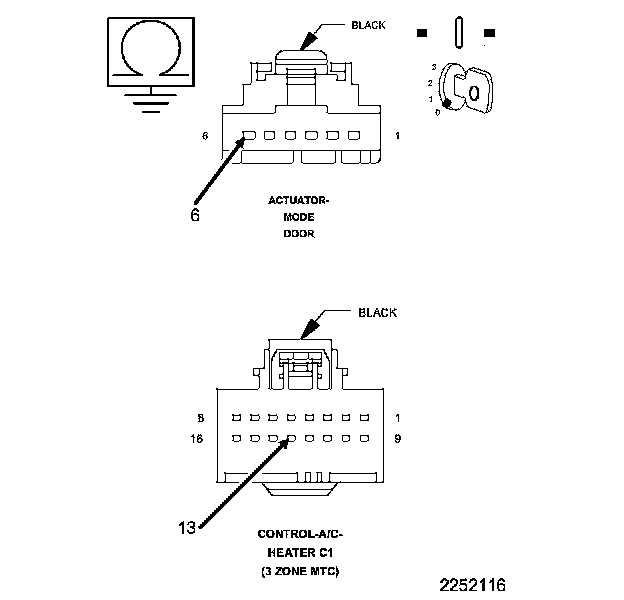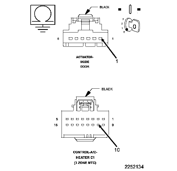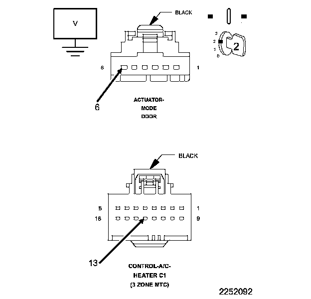 After the initial installation of the A/C Heater Control, the controller is calibrated to each individual blend/mode door actuator. These calibrations are stored as in the number of pulses it takes to move the door from one stop to another. The A/C Heater Control drives the Door Actuators by the use of Door Driver circuit and a Common Door Driver circuit and monitors all door actuator pulses to detect door movement in both directions. Most of the door actuators share a common door driver circuit but each door actuator has its own unique driver circuit. Due to shared circuitry, similar Diagnostic Trouble Codes (DTCs) can set at the same time for multiple actuators depending upon the type of circuit malfunction, its location, and the direction the actuator is moving when the malfunction is present.